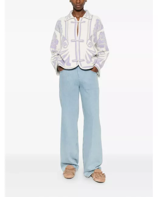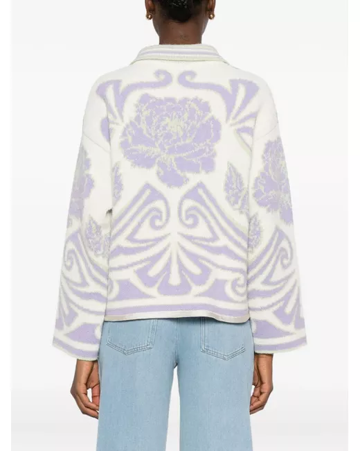 beige and lilac floral pattern front fastening long sleeves