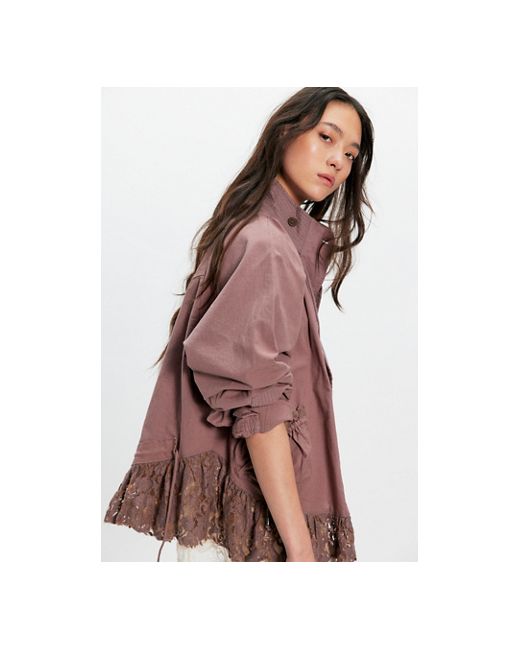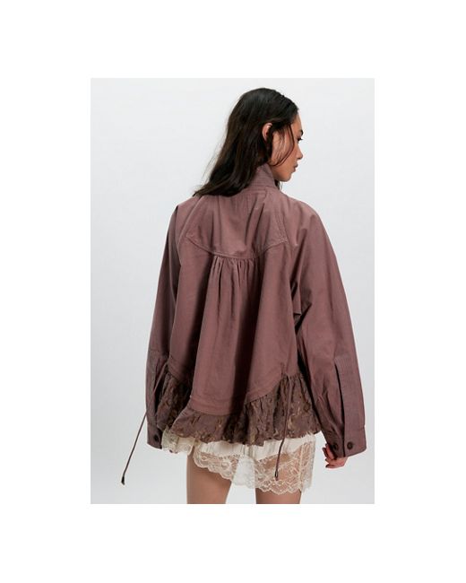 A classic utility design with a femme twist, this elevated jacket from We The Free features a lightweight cotton fabrication, delicate lace trim, and a relaxed, workwear-inspired silhouette. * Snap-button closure * Long sleeves * Stand collar * Adjustable drawcord at neck * Pocket detailing We The Free Outset Jacket at Free People in Plumdust, Size: XS