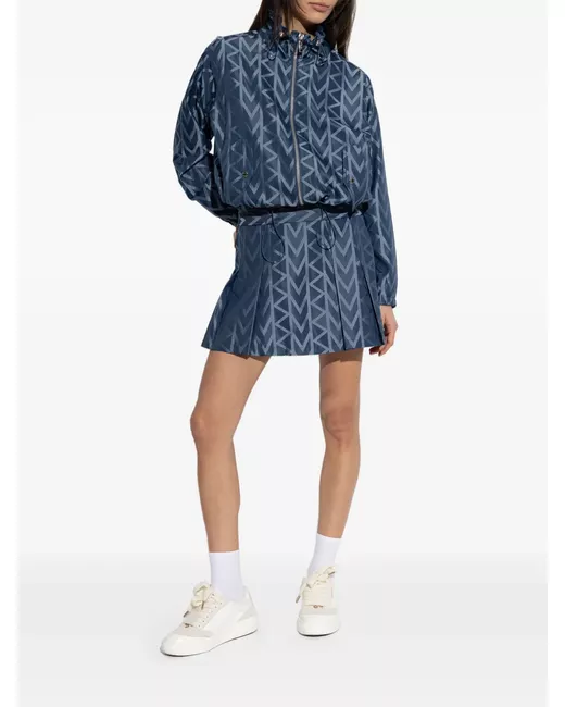 river blue geometric pattern zip fastening drawstring hem high neck two side flap pockets long sleeves