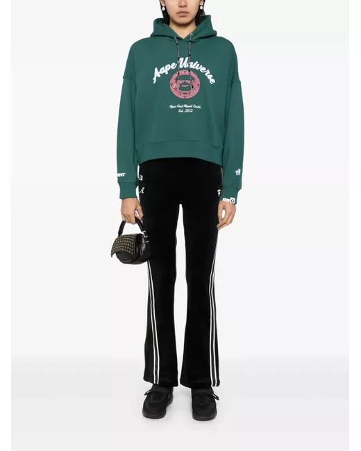 black velvet elasticated waistband with internal drawstring two side welt pockets logo patch to the front embroidered logo to the front logo-tape detailing wide leg