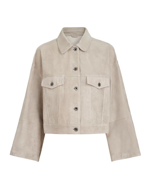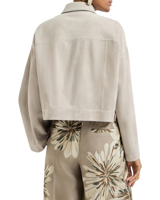 Couture suede outerwear jacket with monili. Metal button closure Shirt-style collar Wide sleeve Hand pockets with flap and button Nickel-free monili decoration Go to specialized facilities for cleaning. Do not dry clean. Do not bleach, do not tumble dry. Iron at low heat 100% leather Made in Italy. Lsd Rtw - Brunello Cucinelli Rtw > Brunello Cucinelli > Saks Fifth Avenue. Brunello Cucinelli. Color: Light Grey. Size: 2.