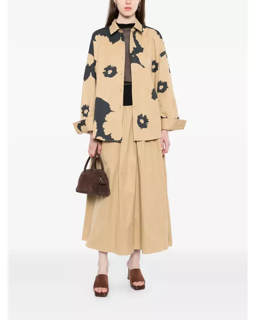 beige floral print long sleeves button fastening button cuffs