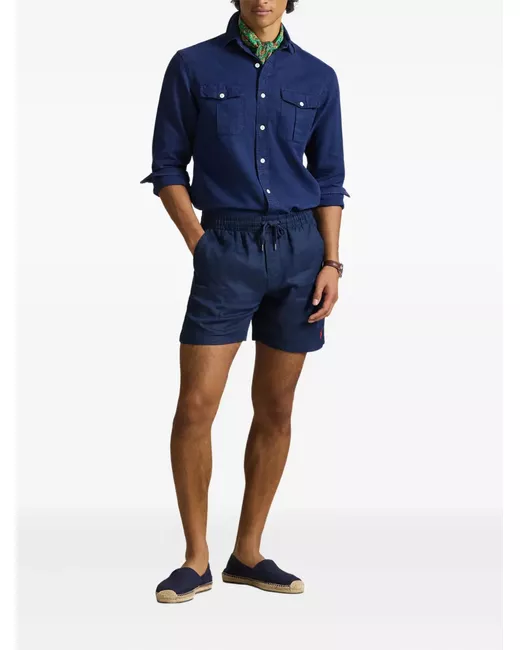 navy blue drawstring fastening elasticated waistband side seam pockets back pocket logo detail