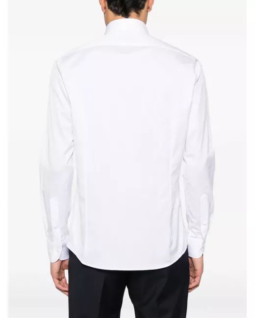 white button closure long sleeves point collar buttoned cuffs
