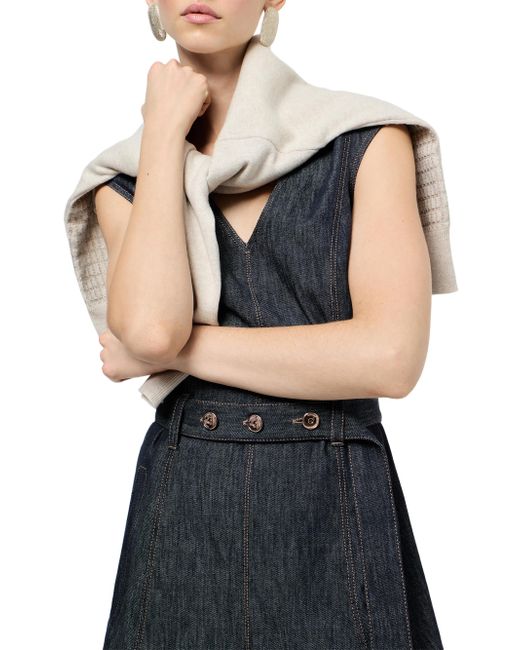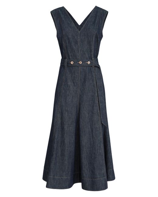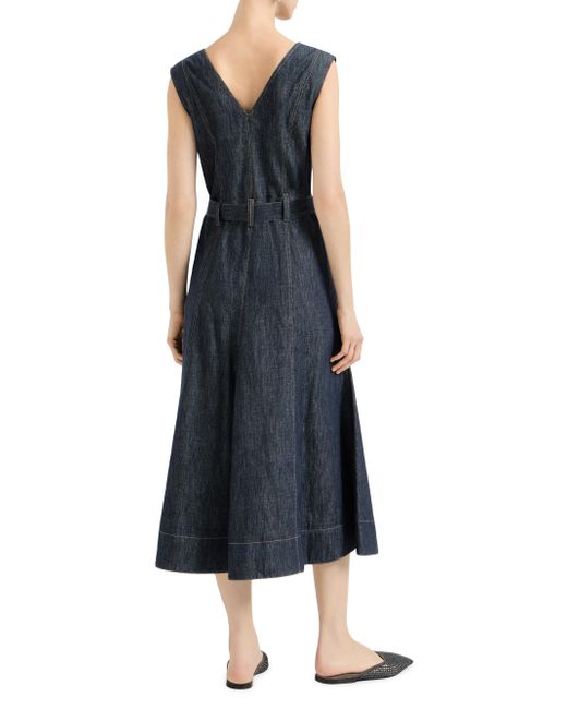 Cotton denim-effect twill flared dress with belt and monili. V-neck Concealed zip closure at side Adjustable and detachable belt with loops Hand pockets Nickel-free monili decoration Wash below 30, do not bleach. Do not tumble dry. Hang dry, iron at medium heat 100% cotton Made in Italy. Lsd Rtw - Brunello Cucinelli Rtw > Brunello Cucinelli > Saks Fifth Avenue. Brunello Cucinelli. Color: Denim. Size: XS.