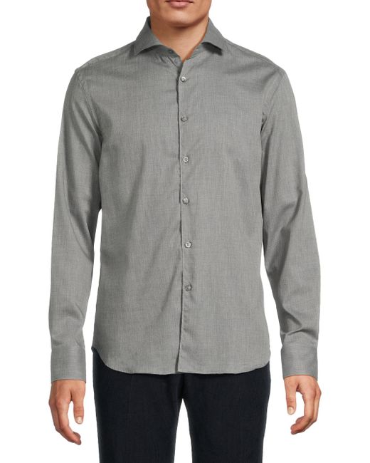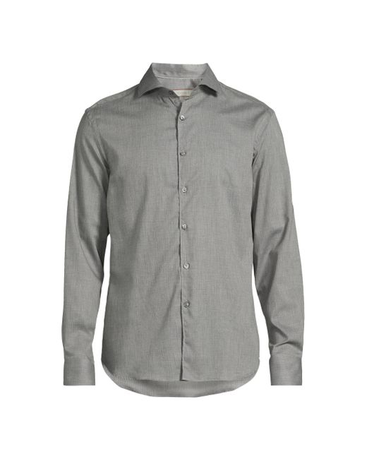 Crafted of cotton, this Canali button-front shirt features a solid herringbone weave. A spread collar, long sleeves with button barrel cuffs, and a shirttail hem lend elevated structure to this style. Spread collar Long sleeves, button barrel cuffs Shirttail hem Button-front closure 100% cotton Machine wash Made in Italy SIZE & FIT About 28" from shoulder to hem Model measurements: 6'2" tall, 40" chest, 31" waist Model is wearing a US size Medium. Men Luxury Coll - Canali Clothing > Canali > Saks Fifth Avenue. Canali. Color: Grey. Size: Small.