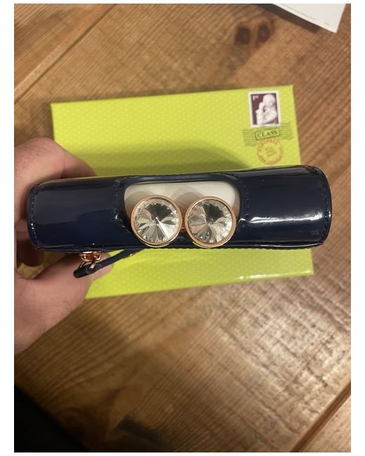 The Ted Baker Ladies Purse is a stylish and practical accessory designed for women. Made from luxurious leather, this zip-around purse features multiple credit card slots, perfect for keeping all your essential cards organized. The elegant blue color adds a touch of sophistication to any outfit, making it a must-have for fashion-forward women. This is a new in box purse unwanted present Bobble purse navy blue