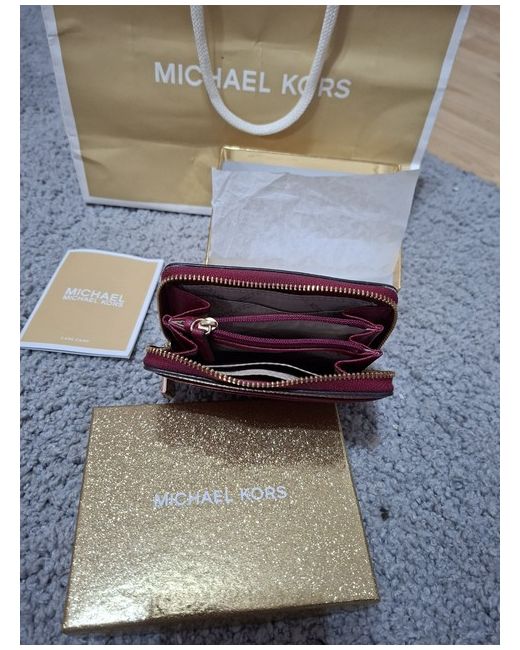 This Michael Kors red leather wallet is a stylish accessory for women, featuring a zip-around design with credit card slots. The wallet showcases the signature Michael Kors logo, adding a touch of luxury to your look. Made from high-quality leather in a vibrant red colour, this wallet is the perfect combination of sophistication and functionality. Ideal for everyday use or special occasions, this wallet is a must-have for any fashion-forward woman looking to add a touch of designer chic to her essentials. Duplicate gift.