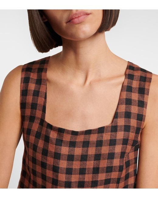Material: 100% linen. Care instructions: machine wash at 30 degrees. Made in Portugal. Designer color name: Brown Black Check. Closure: snap-buttoned back. Linen.