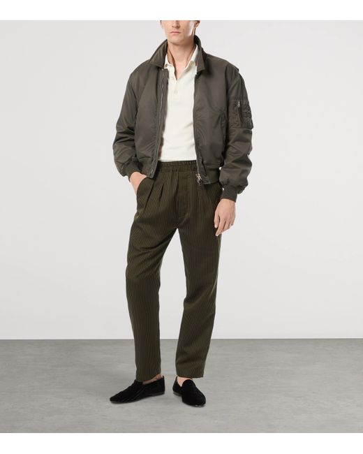 Since its 2005 inception, tom ford has continued to reference tailoring techniques in its designs, as seen by this bomber jacket. The piece offers sophisticated functionality, owing to a double-zip closure and additional waist pockets that sit above a rib-cinched waist. Those, along with contrast-stitch details, celebrate masterful construction.