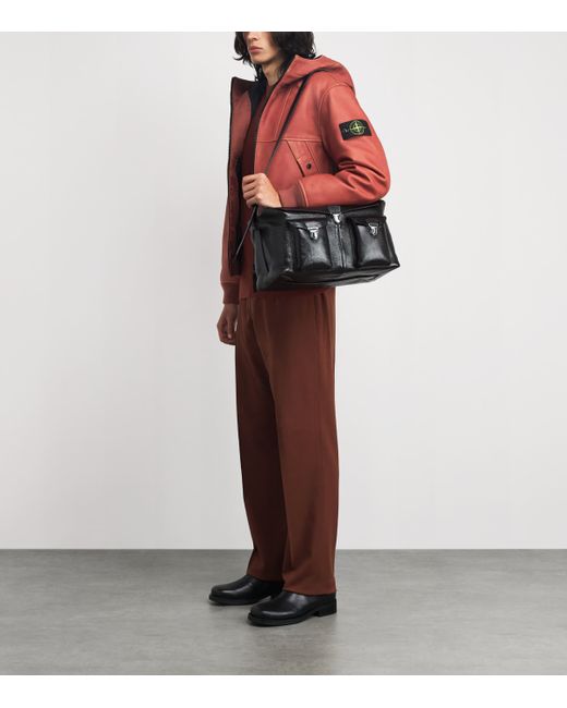 Working leather with the same experimental approach it applies to textiles, Stone Island rethinks the hooded jacket through material science rather than tradition. The fine-grained cowhide is barrel-treated with waxes to create a richly textured surface, then carefully split to reduce thickness, ensuring the jacket remains supple, wearable and surprisingly comfortable.
