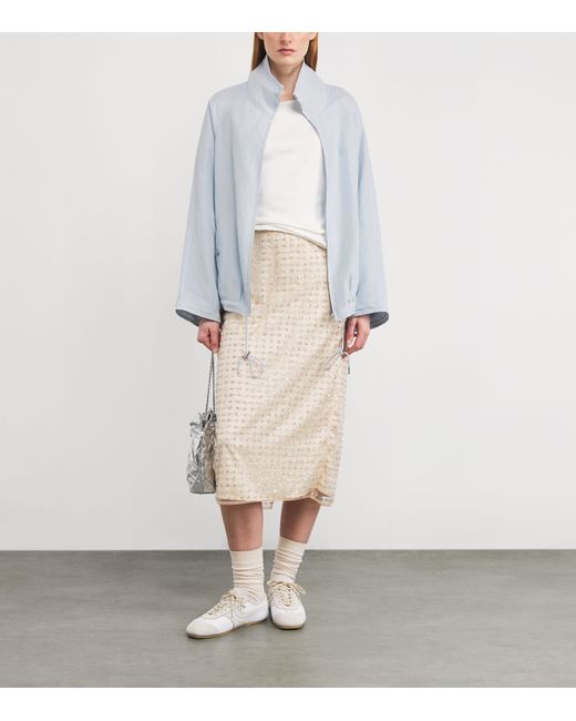 Presented as part of Sandro's Spring/Summer 2026 collection, this embroidered jacket boasts versatility thanks to its oversized fit. Its funnel neckline stands proud, joined by wide-cut raglan sleeves that can be cinched with silver-tone drawstrings. The piece is completed by the label's embroidered logo, now a mark of elevated offerings.