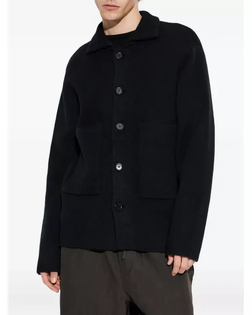 black patch pockets button fastening collar long sleeves knitted construction