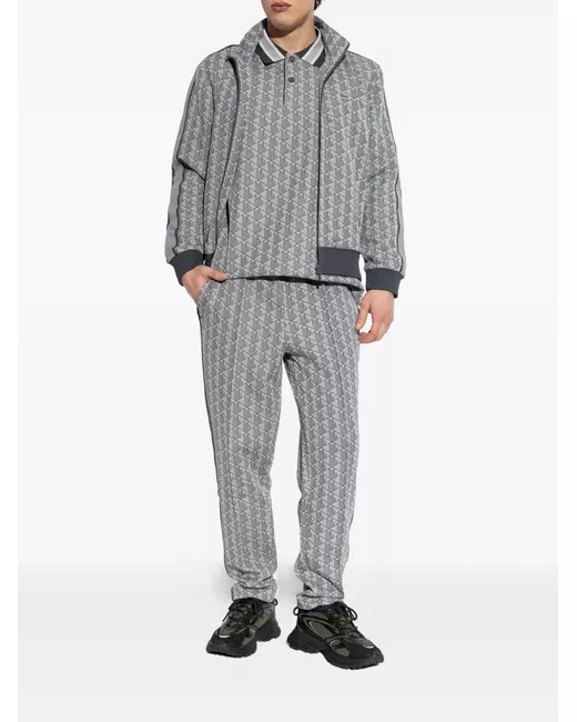 grey all-over pattern ribbed hem ribbed cuffs zip closure logo embroidery