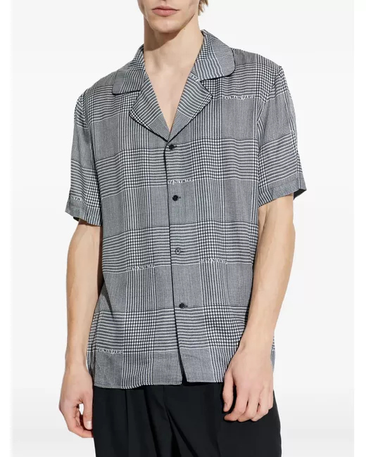 white and black houndstooth pattern button fastening short sleeves camp collar