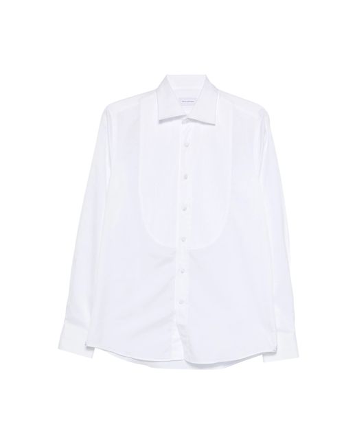 white bib detail button fastening long sleeves pointed collar buttoned cuffs