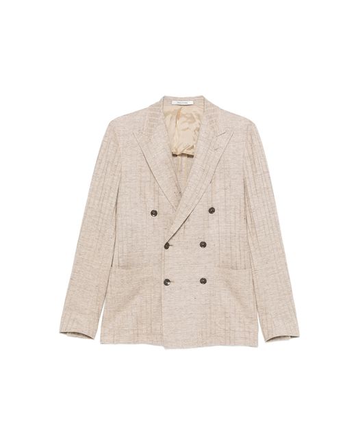 beige double-breasted button fastening long sleeves peak lapels chest welt pocket two front pockets