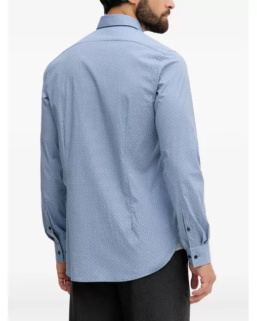 light blue buttoned point collar long sleeves all-over pattern logo detail