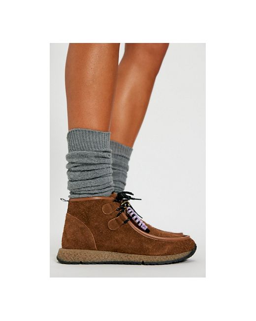 Handmade in Spain, these mocc boots from FP Collection are the perfect blend between moccasin and boot, featuring hairy suede uppers with an intentionally shaggy look, contrast hiker laces, a shoe charm, and a branded FP rubber tab for a distinctive touch to this ultra-versatile pair. * Hairy suede uppers with a longer, softer nap than traditional suede * Lace-up mocc boot * Contrast hiker laces * Gold metal shoe charm * Front and back pull tabs * Textured rubber outsole Gibson Mocc Boots by Free People in Tan, Size: US 7