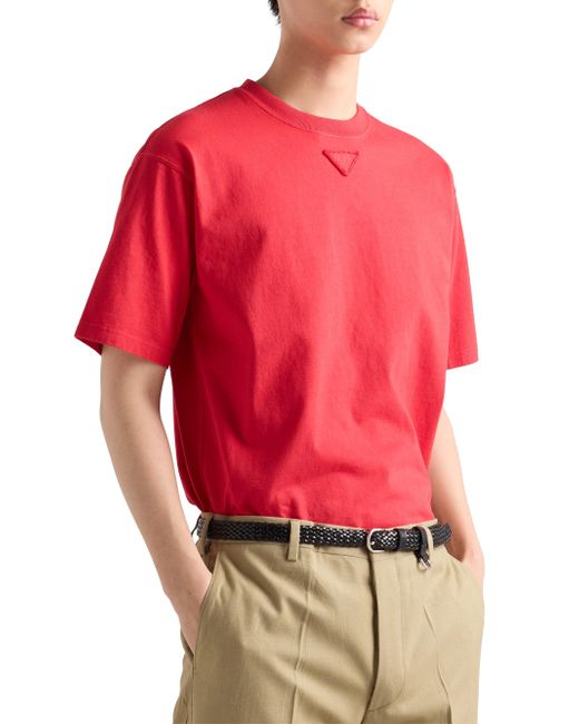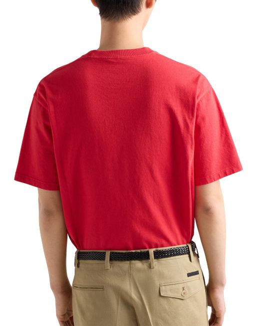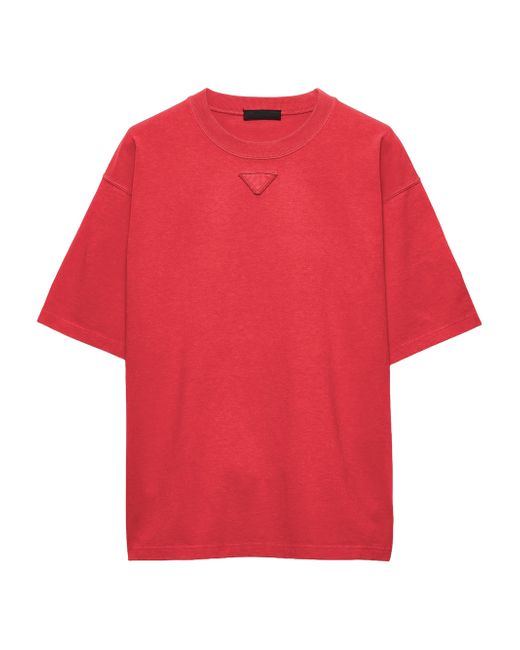 Boxy fit Short sleeves Straight hem Conceptual triangle logo Length: 70 cm, Size: M Imported 100% Cotton. Lsd Rtw - Prada Rtw > Prada > Saks Fifth Avenue. Prada. Color: Red. Size: XS.