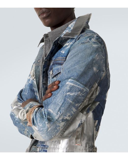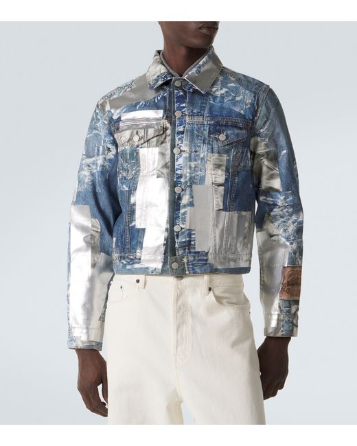 Men's Blue Printed denim jacket