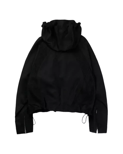 black drawstring hem zip fastening drawstring hood front flap pockets