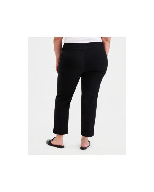 Women's Black Plus Petite Tummy Control Pull-On Slim-Leg Pants Exclusively