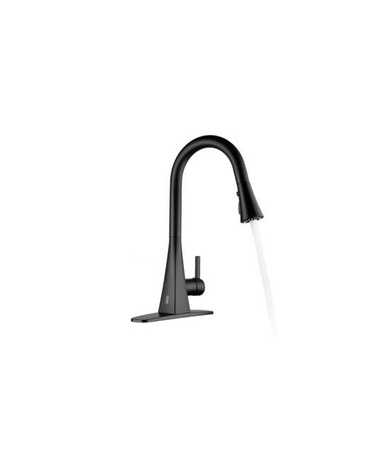 This kitchen faucet features dual sensing: pull-down spray head for flow control and infrared sensing for hands-free operation, enhancing convenience. Its modern design suits various kitchen styles.