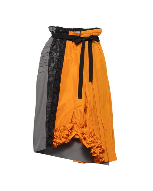 Women's Orange Technical Taffeta Patchwork Skirt