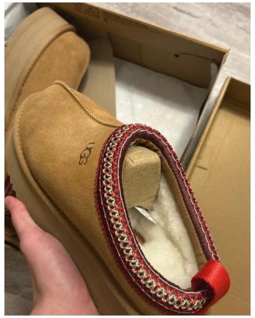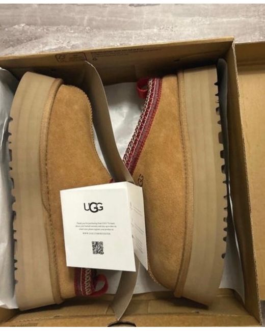 The UGG Tasman in Chestnut, UK size 6, is a stylish and comfortable ankle boot perfect for casual occasions during the winter season. Made with sheepskin lining, suede upper, and a rubber outsole, these boots offer both warmth and durability. The slip-on style with a round toe and low heel height adds to the ease and comfort of wearing them all day. Featuring the UGG logo as accents, these boots are a classic addition to any woman's wardrobe from the renowned brand UGG Australia.
