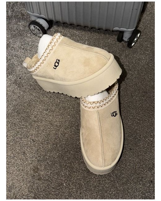 The Uggs Tazz II Women's UK Size 7 boots are a stylish and comfortable choice for the winter season. Made from 100% cotton, these slip-on boots feature a round toe shape and standard shoe width, making them perfect for casual occasions. The beige colour adds a touch of sophistication to the UGG Australia brand, while the timeless style ensures they will be a staple in any woman's wardrobe. With their easy-to-wear design and quality construction, these boots are a must-have for those looking for both fashion and functionality in their footwear.