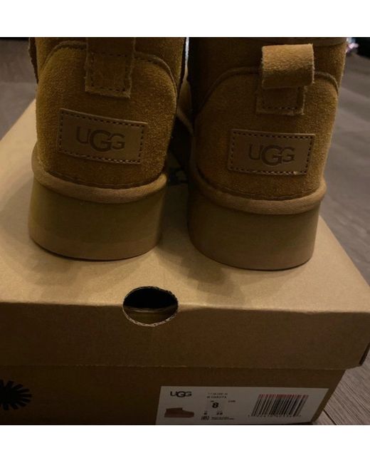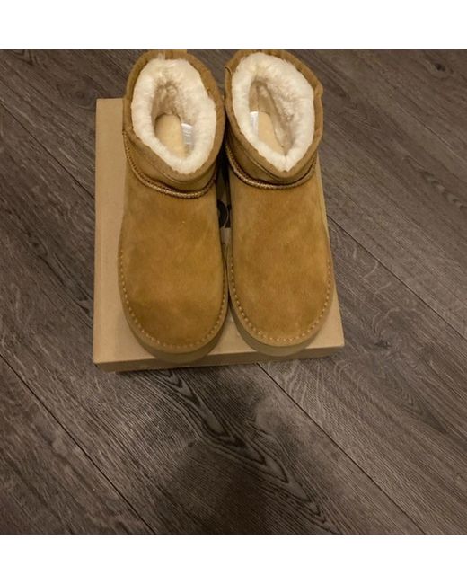 These UGG Boots Australia Women's Size 6 UK are a stylish addition to any woman's wardrobe. With a round toe, ankle height, and low heel, they are perfect for casual occasions in the winter season. The brown suede boots feature the signature logo accents and sheepskin lining, providing both comfort and style. Made with a rubber outsole, they offer durability and stability, while the flat heel design ensures all-day wearability. Perfect for pairing with jeans or leggings, these UGG Australia Classic Mini boots are a timeless choice for any fashion-forward woman.