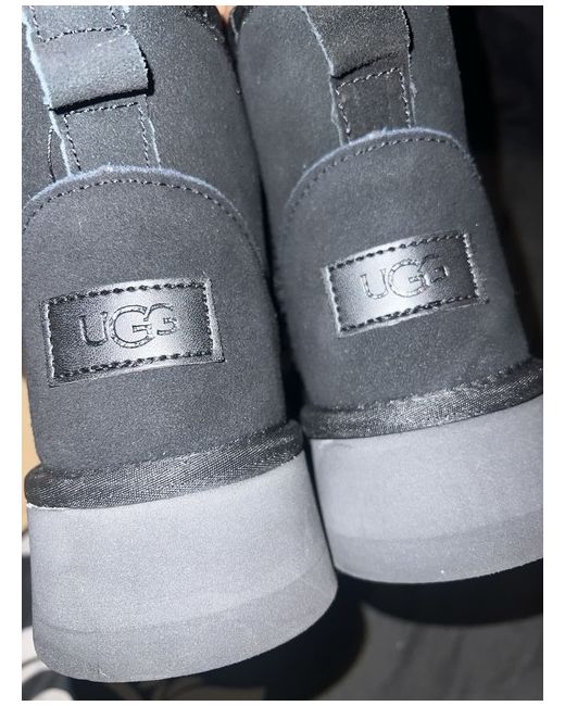 The UGG Classic Short is a stylish and comfortable pair of black sheepskin boots in UK shoe size 7.5.