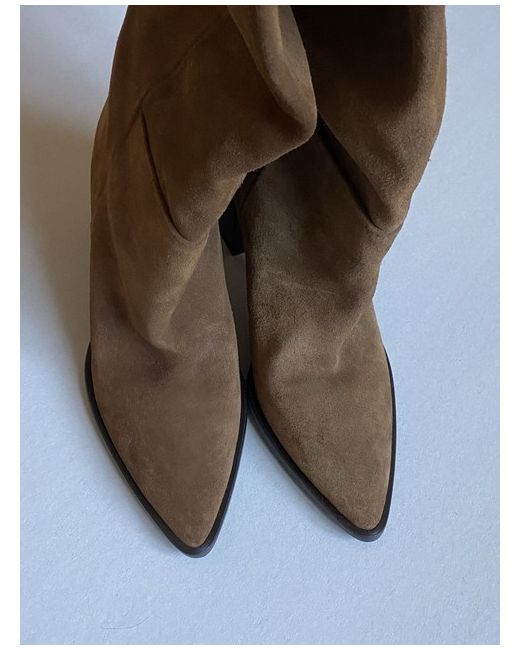 New Size EU 40, UK7 Genuine suede H=53 cm Heels =9 cm Please note that due to the natural characteristics of real suede, there may be slight variations in tone between the boots. This is not a defect but a feature of natural leather. Kindly refer to all photos for details