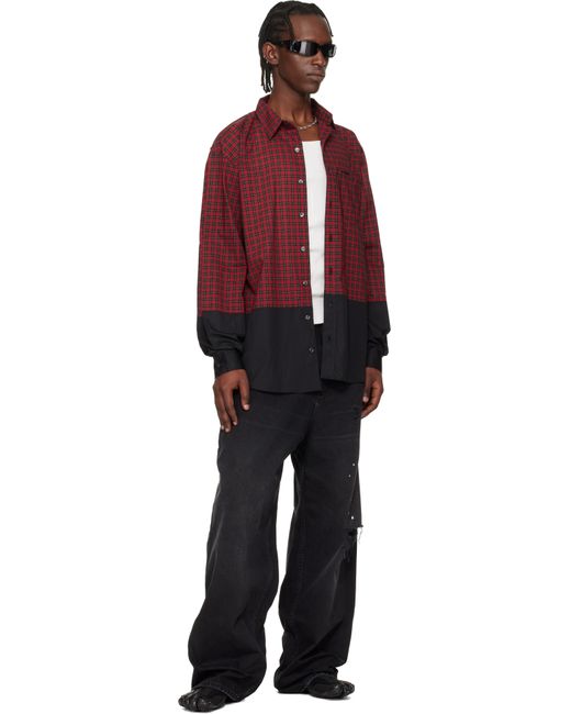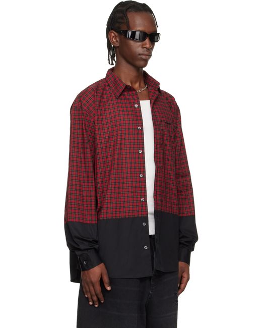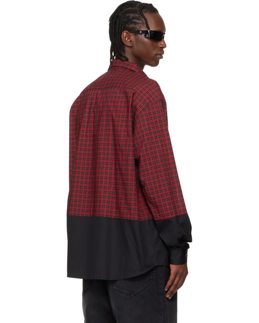 Plain-woven cotton and cotton poplin shirt. · Check pattern throughout · Paneled construction · Spread collar · Button closure · Patch pocket with logo patch at chest · Shirttail hem · Buttoned barrel cuffs · Twin pleats at back yoke Supplier color: Red Check/Black