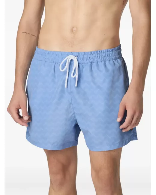 light blue zigzag pattern drawstring fastening elasticated waistband back pocket Be mindful to try on swimwear over your own garments.