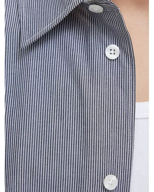 grey striped button fastening point collar long sleeves buttoned cuffs