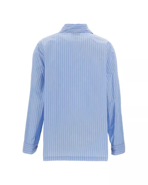 blue striped design button front fastening front patch pockets long sleeves