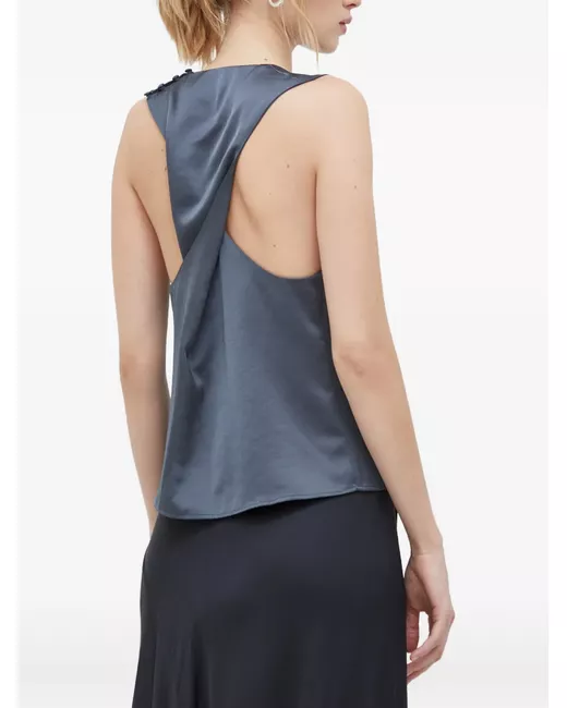 blue-grey racerback buttoned back sleeveless round neck tonal stitching