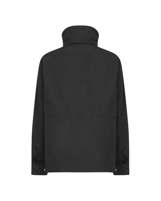 black pull-out hood long sleeves logo patch welt pockets adjustable cuffs