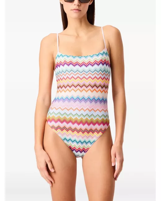 blue and multicolor zig-zag design spaghetti straps tie detail Be mindful to try on swimwear over your own garments. The item you receive may differ slightly from the item photographed. This is due to the artisanal nature with which all Missoni products are constructed.