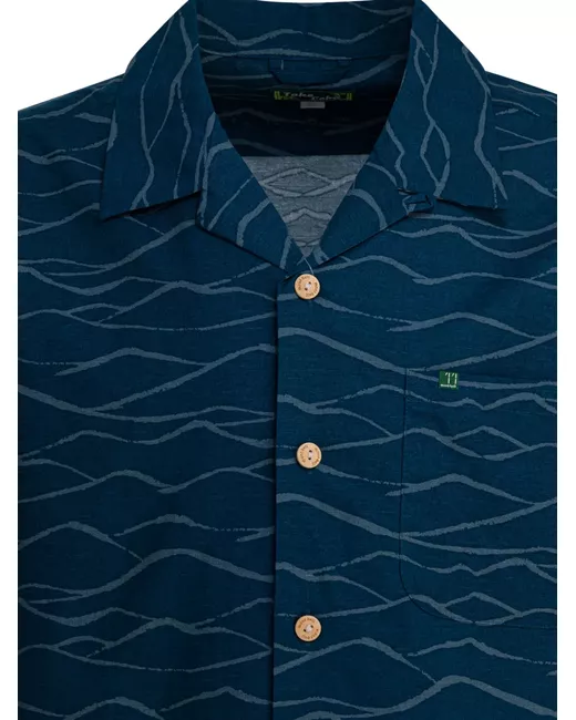 blue pattern chest pocket short sleeves buttons camp collar