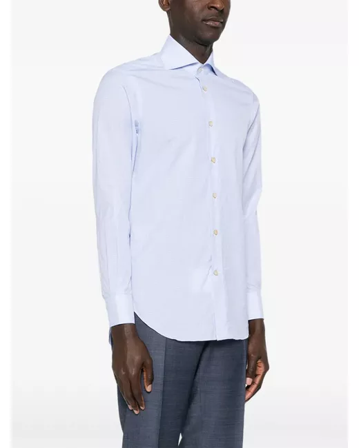 light blue micro check pattern button fastening classic collar long sleeves rounded hem