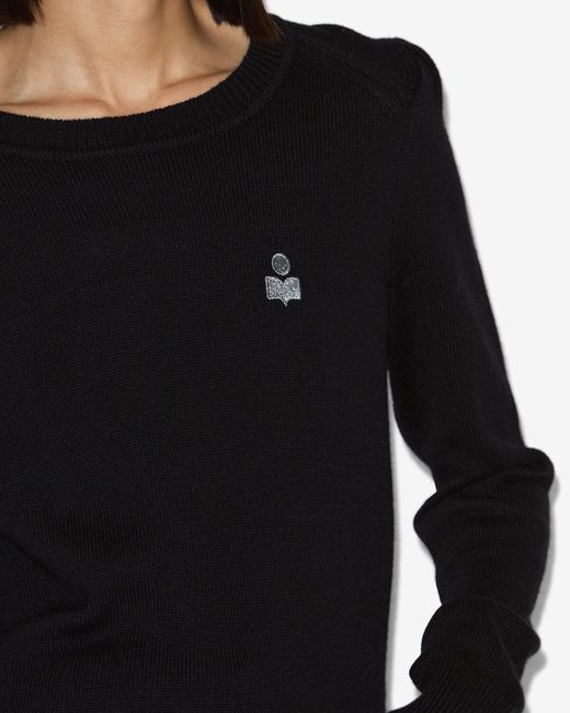 Cotton and wool blend sweater Round neckline Long sleeves with gathered shoulders Embroidered silver-finish chest logo Straight cut and ribbed finish Style: PU0733FB-C3L15E ABELLE Color: black; Size: 34, 36, 38, 40, 42, 44