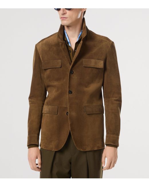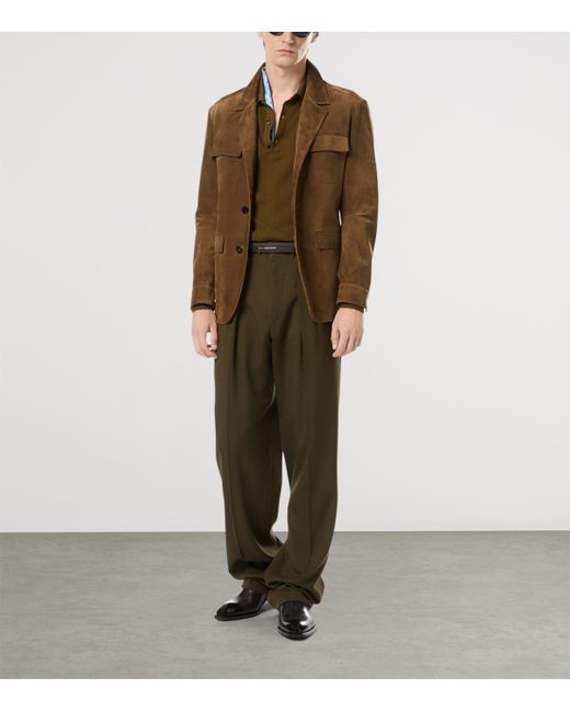 With its prowess for quality and cut, tom ford has continued to offer refined takes on menswear's time-honoured silhouettes for the modern man's uniform. This military-inspired jacket encapsulates the brand's philosophy, with its supple calfskin suede exterior creating a piece that is both functional and elevated.