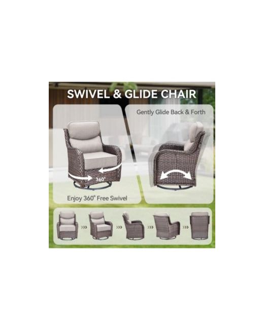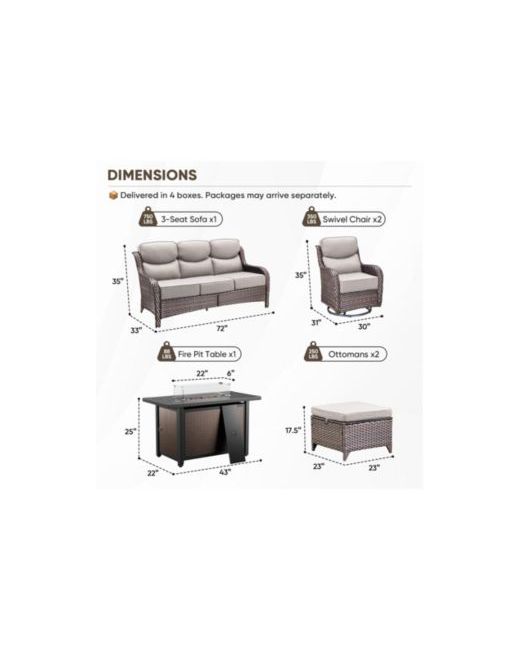 Beige Crescent Brown Wicker Fire Pit Conversation Set with Olefin 6 Thick Cushions Patio Swivel Chairs 7-Piece