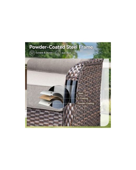 Piece Patio Furniture Wicker Conversation Set beige cushions