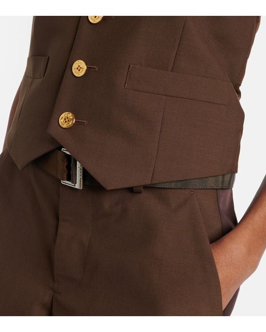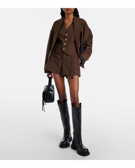 Material: 70% polyester, 30% wool. Care instructions: dry clean. Made in Japan. Designer color name: Brown. Material II: 100% nylon. Lining: 100% cupro. Closure: buttoned front.