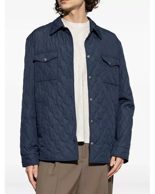 blue diamond quilting point collar chest pockets button fastening paisley print reverse