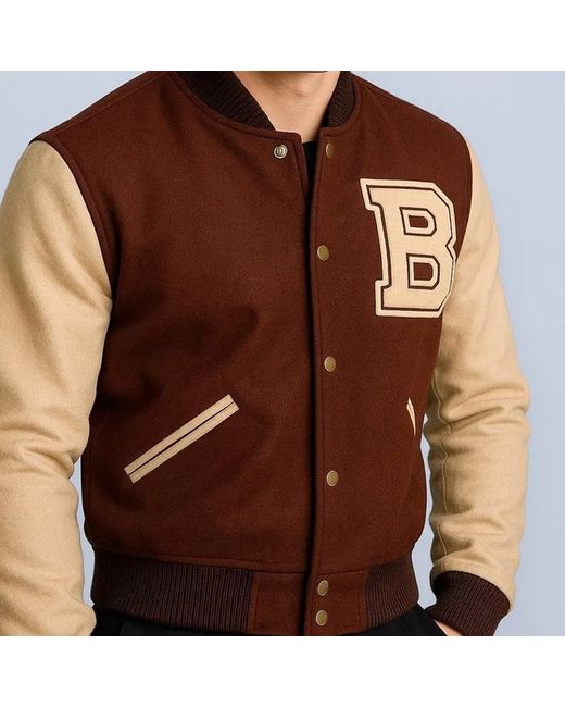 Men's Brown Varsity Letterman Baseball Jacket Wool Body with Sleeves